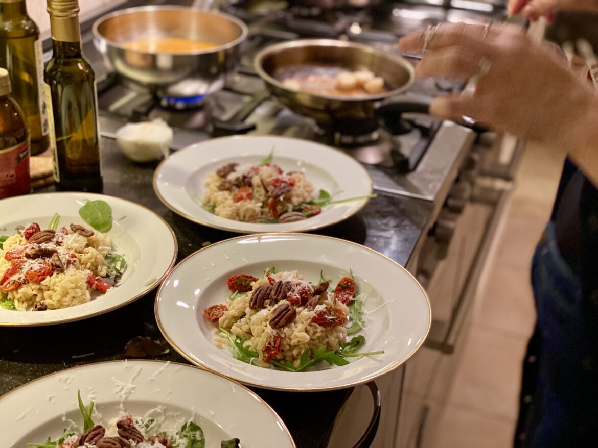 Nu är hjärtat mer än kurerat så jag kan inte låta bli att ge er AnnaAntonias risotto med halstrade pilgrimsmusslor, slötorkade tomater, saltrostade pekannötter och basilikaolja. Självklart med några vintips till…