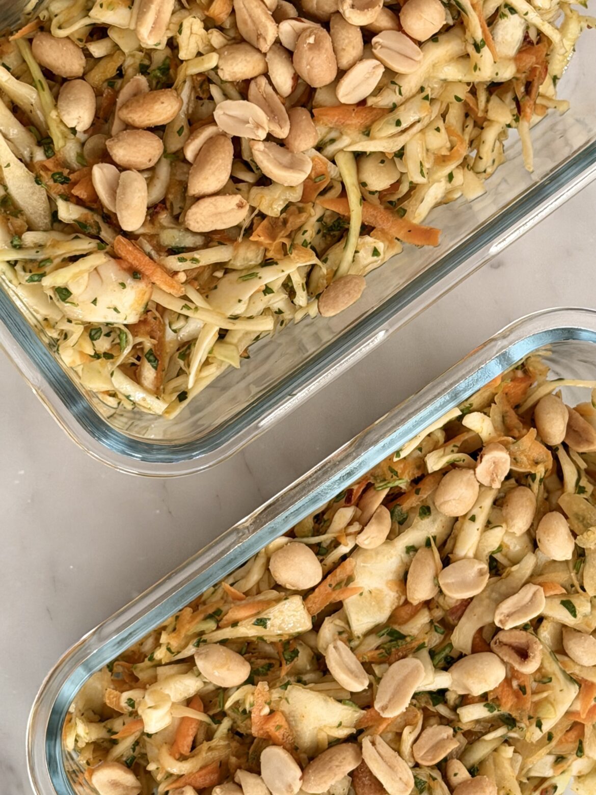 Den dök upp överallt i mina flöden. Vitkålssallad med jordnötsdressing. Och ju fler gånger jag scrollade förbi den, desto mer sugen blev jag. Till slut var det bara att kavla upp ärmarna och börja!